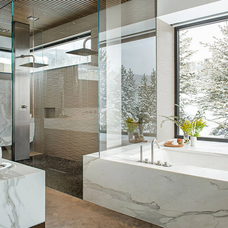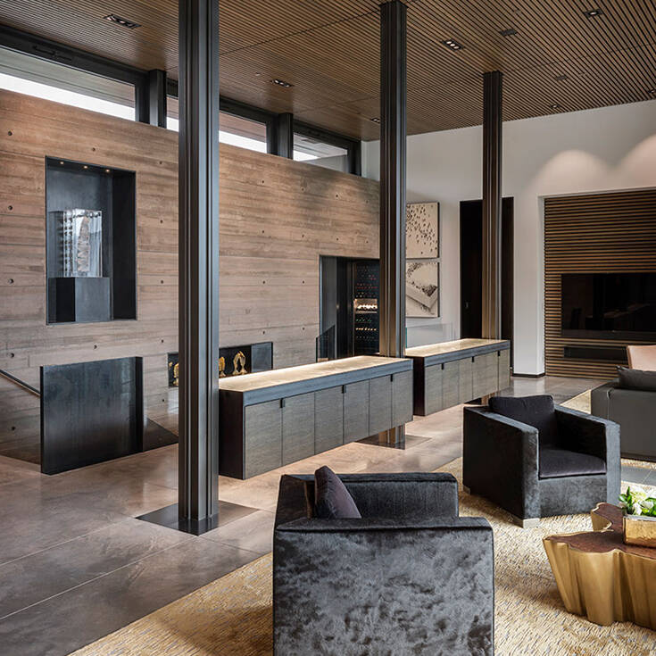 Είναι χτισμένο σε υψόμετρο 2.500 μέτρων σε οροσειρά της Μοντάνα των ΗΠΑ και εγκαταλείπει την αισθητική του ξύλου για χάρη των βιομηχανικών υλικών και των καθαρών γεωμετρικών μορφών.