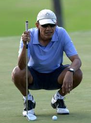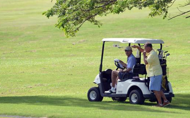 Έτσι, επιδόθηκε στο αγαπημένο του γκολφ και όπως φαίνεται από τις φωτογραφίες το διασκέδασε αρκετά.