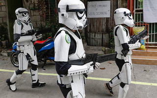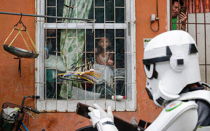 Ντυμένοι με κοστούμια χαρακτήρων από τη δημοφιλή σειρά ταινιών «Πόλεμος των Άστρων», τοπικοί αξιωματούχοι στις Φιλιππίνες κυκλοφορούν στους δρόμους για να επιβάλλουν τα αυστηρά μέτρα καραντίνας, αλλά και για να διανέμουν πακέτα με είδη πρώτης ανάγκης, κυρίως τρόφιμα.