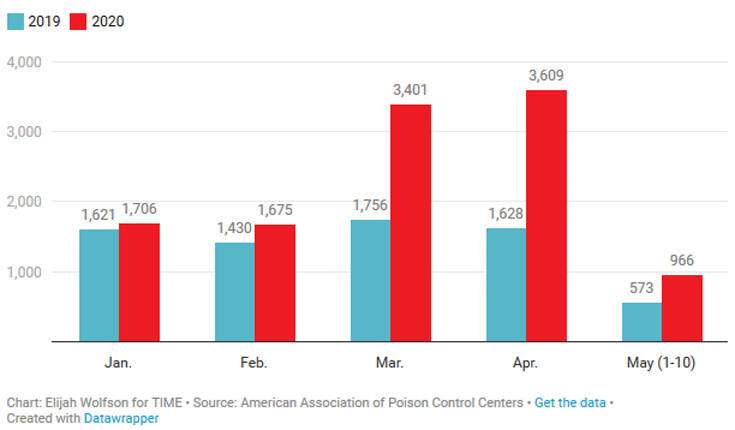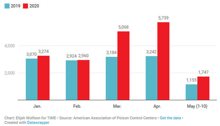 Σύμφωνα με το δημοσίευμα του ΤΙΜΕ, ακόμα και πριν τις 23 Απριλίου, που τοποθετήθηκε σχετικά ο Τραμπ, οι δηλητηριάσεις ήταν αυξημένες σε σχέση με πέρσι, αύξηση που αποδίδεται κυρίως στην εντατικοποίηση της απολύμανσης προϊόντων και επιφανειών λόγω κορονοϊού. Τα περισσότερα περιστατικά συνδέονταν με εισπνοή χημικών ουσιών αλλά υπήρχαν και περιστατικά κατάποσης, που αφορούσαν κυρίως παιδιά.