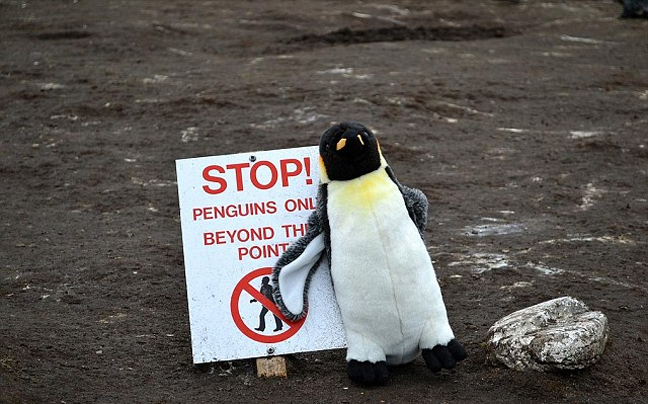 Ο 32χρονος Mark Thompson παίρνει πάντα μαζί του τον Mumbles, έναν λούτρινο πιγκουίνο που του χάρισε η 26χρονη κοπέλα του Meredith Craven. Δεν παραλείπει όπως ποτέ να φωτογραφίζεται με τον Mumbles σε όποιο σημείο της Γης βρίσκεται και να στέλνει την φωτογραφία στην Meredith.