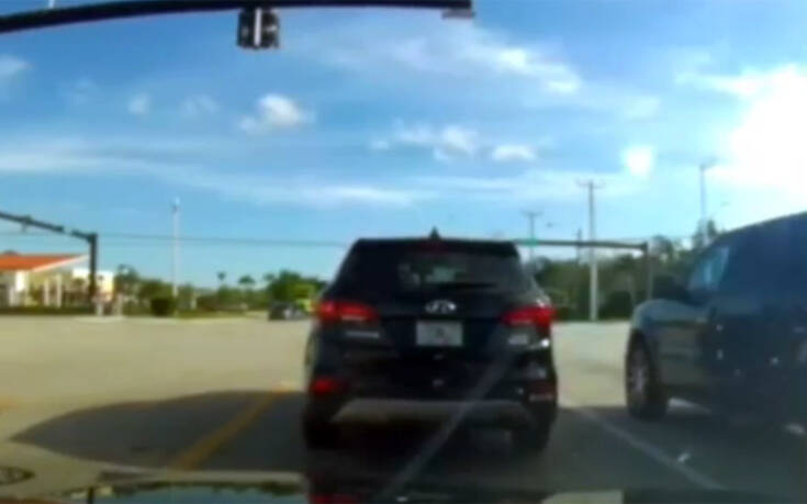 Στο βίντεο που κατέγραψε κάμερα από αυτοκίνητο φαίνεται το αεροσκάφος τύπου Piper PA-34 να χτυπάει πάνω στα καλώδια και να βγαίνουν σπίθες.