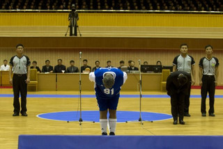 Ο ηγέτης της Βορείου Κορέας Κιμ Γιονγκ Ουν παρέστη σε ένα παιχνίδι μπάσκετ που διοργανώθηκε προς τιμήν του, σήμερα στην Πιονγιάνγκ, από τον αμερικανό σταρ και πρώην μπασκετμπολίστα του NBA, Ντένις Ρόντμαν.