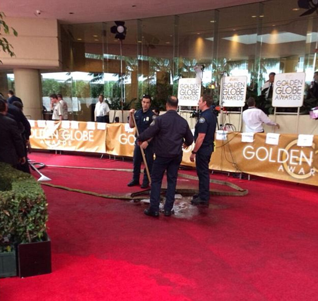 Συναγερμός σήμανε όταν κατά τη διάρκεια της απονομής των βραβείων για τις Χρυσές Σφαίρες (Golden Globes) το κόκκινο χαλί πλημμύρισε σκορπώντας τον πανικό στους διοργανωτές αλλά και τους διαγωνιζόμενους.
