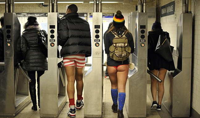 Να κάτι που δεν βλέπεις κάθε μέρα στο μετρό. Μια νέα «μόδα» ξεκίνησε από μια φάρσα κωμικών το 2002, οι οποίοι ξεγύμνωναν ανυποψίαστους περαστικούς στο τρένο και το μετρό.