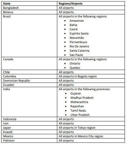 O Ευρωπαϊκός Οργανισμός Ασφάλειας της Αεροπορίας (EASA), ένα επίσημο όργανο της ΕΕ, δημοσιοποίησε τη «μαύρη λίστα» των αεροδρομίων που βρίσκονται σε 34 χώρες υψηλής μετάδοσης του κορονοϊού.