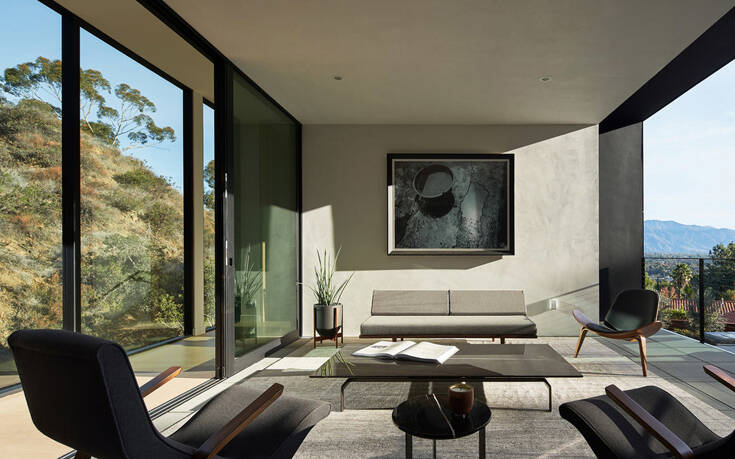 Μινιμαλιστική αισθητική και αυστηρή χρωματική παλέτα ολοκληρώνουν την εντυπωσιακή καλιφορνέζικη έπαυλη…