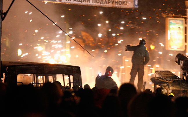 Μολότοφ κατά των αστυνομικών και πέτρες από τα πεζοδρόμια εκτόξευσαν χθες το βράδυ εκατοντάδες διαδηλωτές, οπαδοί της αντιπολίτευσης στην Ουκρανία, κατά της αστυνομίας.