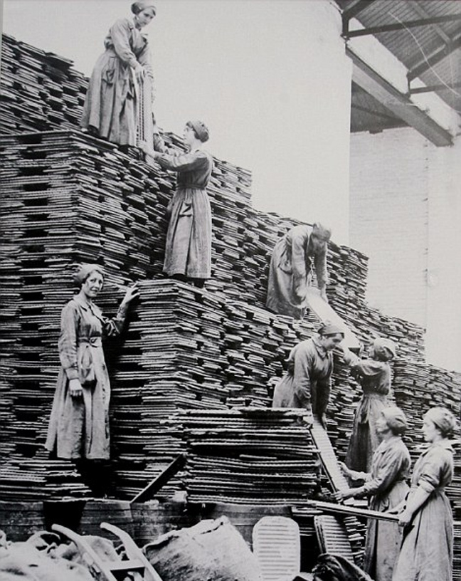 Η κατάσταση αυτή άλλαξε δραστικά με την έναρξη του πολέμου, όταν οι άνδρες κλήθηκαν στα όπλα και οι γυναίκες αναγκάστηκαν να αναλάβουν την έως τότε ανδρική υπόθεση της δουλειάς στα εργοστάσια.