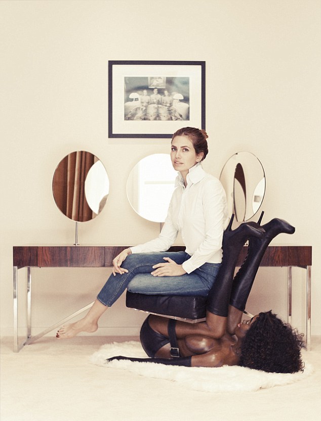 Στην επίμαχη εικόνα, η Dasha Zhukova εμφανίζεται να κάθεται σε μια καρέκλα που μοιάζει με μαύρη, ημίγυμνη γυναίκα.