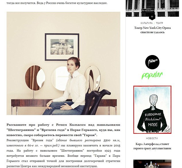 Η φωτογραφία, σύμφωνα με τη Daily Mail, δημοσιεύτηκε στο ρωσικό blog μόδας «Buro 24/7» σε χτεσινό άρθρο-συνέντευξη με τη Dasha Zhukova.