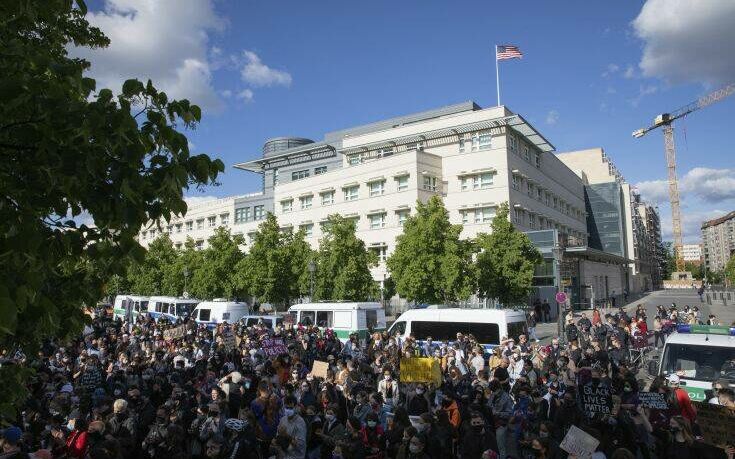 Πολλές εκατοντάδες διαδηλωτές πραγματοποίησαν διαμαρτυρία έξω από την πρεσβεία των ΗΠΑ στο Βερολίνο κρατώντας πόστερ που έγραφαν «Δικαιοσύνη για τον Τζορτζ Φλόιντ», «Σταματήστε να μας σκοτώνετε» και «Ποιός θα είναι ο επόμενος;».