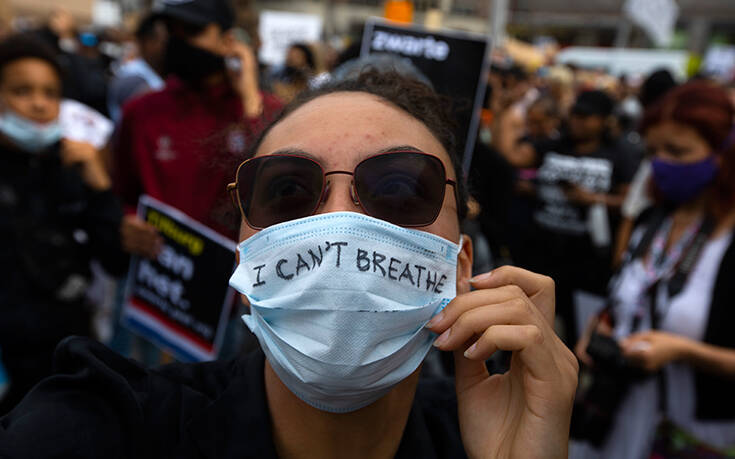 Φωνάζοντας «Δεν μπορώ να αναπνεύσω», χιλιάδες διαδηλωτές συγκεντρώθηκαν στο κέντρο του Άμστερνταμ σήμερα σε ένδειξη αλληλεγγύης προς τον Τζορτζ Φλόιντ, τον Αφροαμερικανό που πέθανε στα χέρια αστυνομικών, στις ΗΠΑ, την περασμένη εβδομάδα.