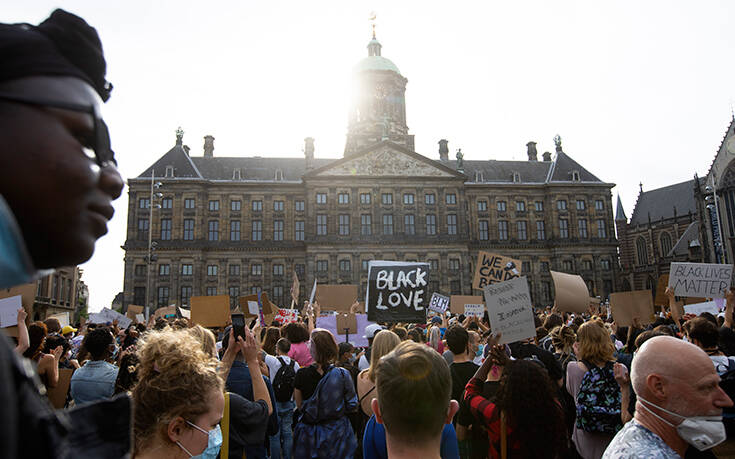 Περίπου 10.000 άνθρωποι κατέκλυσαν την πλατεία Dam του Άμστερνταμ, αψηφώντας τις οδηγίες για τήρηση των κανόνων κοινωνικής αποστασιοποίησης και φωνάζοντας «Black lives matter» (Οι ζωές των μαύρων μετρούν) και «No justice, no peace» (Χωρίς δικαιοσύνη, δεν υπάρχει ειρήνη). Το πλήθος παρεμπόδισε την κυκλοφορία, χωρίς, ωστόσο, να προκληθούν επεισόδια.