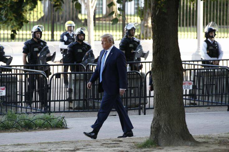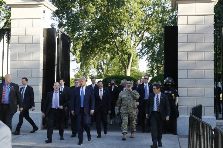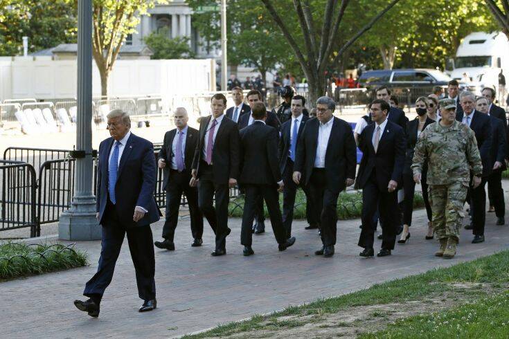 Αστυνομικοί, αρκετοί έφιπποι, έκαναν κατόπιν έφοδο για να απωθήσουν τους κυρίως ειρηνικούς διαδηλωτές. Μετά το τέλος του διαγγέλματός του, ο Τραμπ περπάτησε ως την εμβληματική αγγλικανική εκκλησία του Αγίου Ιωάννη, στο Πάρκο Λαφαγιέτ, ένα τετράγωνο από τον Λευκό Οίκο — το κτίριο υπέστη φθορές στα επεισόδια της προηγουμένης — με ελικόπτερα να πετούν από πάνω και δεκάδες στελέχη της προεδρικής ασφάλειας να τον πλαισιώνουν.