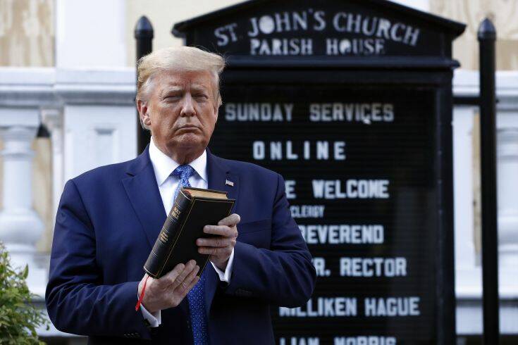 «Έχουμε μια σπουδαία χώρα», είπε ο Τραμπ φωτογραφιζόμενος μπροστά στην εκκλησία, κρατώντας ένα αντίτυπο της Αγίας Γραφής, προτού επιστρέψει στον Λευκό Οίκο.