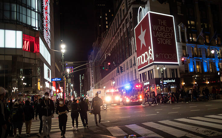 Παρά το πρωτοφανές αυτό μέτρο, η οικονομική πρωτεύουσα των ΗΠΑ μετατράπηκε εκ νέου σε θέατρο ταραχών χθες το βράδυ, ιδίως στη συνοικία Μιντάουν, στην καρδιά του Μανχάταν.