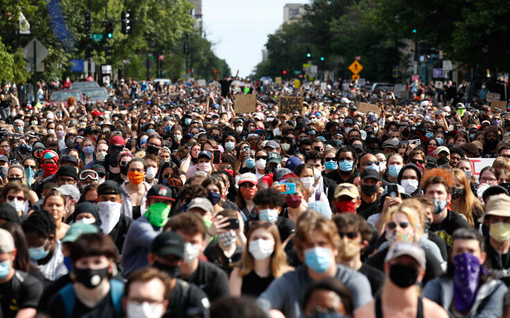 Στην Ουάσινγκτον, όπως και σε δεκάδες άλλες πόλεις στις ΗΠΑ, γίνονται καθημερινά κινητοποιήσεις τις τελευταίες ημέρες από ανθρώπους που καταγγέλλουν τον βαθιά εδραιωμένο ρατσισμό στη χώρα μετά τον θάνατο του Τζορτζ Φλόιντ, 46χρονου Αφροαμερικανού, κατά τη διάρκεια της βίαιης προσαγωγής του από λευκούς αστυνομικούς στη Μινεάπολη την περασμένη Δευτέρα.