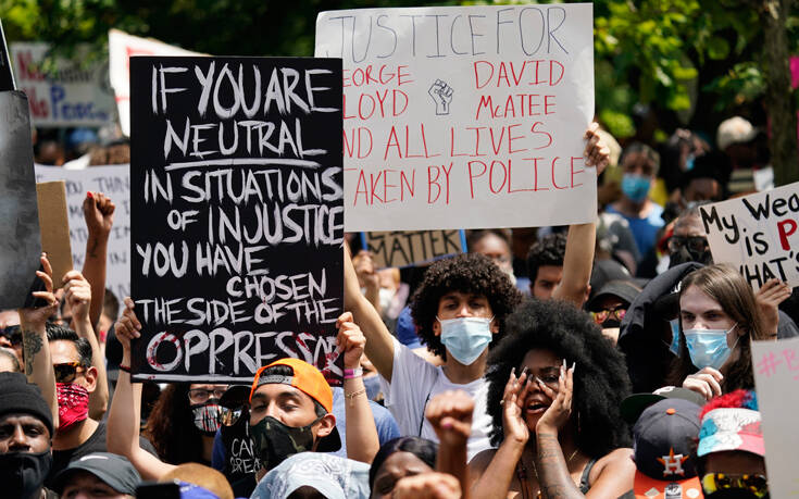 Δεκάδες χιλιάδες άνθρωποι διαδήλωσαν ειρηνικά χθες Τρίτη στην πόλη Χιούστον, στην πολιτεία Τέξας, για να αποτίσουν φόρο τιμής στον Τζορτζ Φλόιντ και να απαιτήσουν δικαιοσύνη, μετά τον θάνατο του 46χρονου Αφροαμερικανού κατά τη διάρκεια της βίαιης προσαγωγής του από λευκούς αστυνομικούς στη Μινεάπολη την 25η Μαΐου.