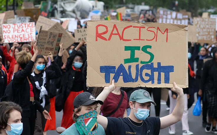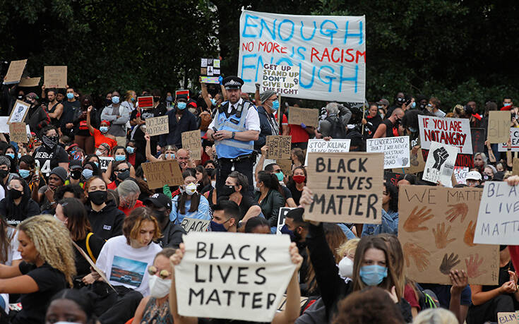 Φωνάζοντας συνθήματα όπως «Αν δεν υπάρχει δικαιοσύνη, δεν υπάρχει ειρήνη, όχι στη ρατσιστική αστυνομία» και «η ζωή των μαύρων έχει σημασία», χιλιάδες άνθρωποι συγκεντρώθηκαν στο κέντρο του Λονδίνου σήμερα για να καταδικάσουν τον ρατσισμό, μετά τον θάνατο του Αφροαμερικανού Τζορτζ Φλόιντ στη Μινεάπολη.
