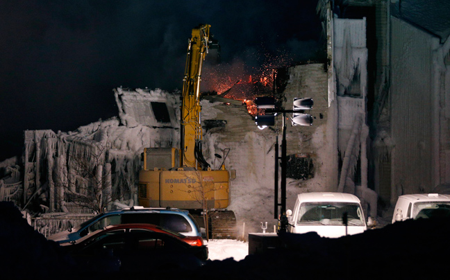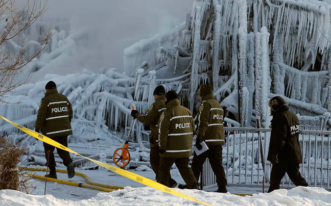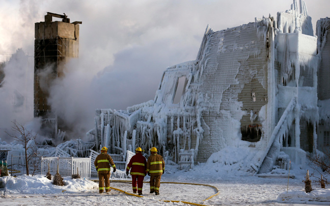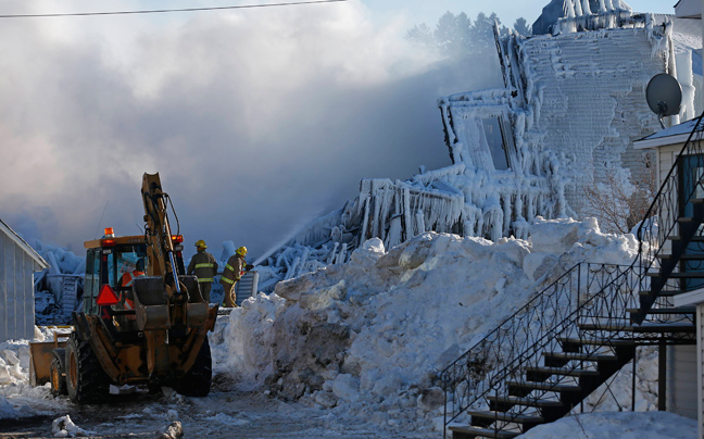 Με τις ποσότητες νερού που ερρίφθησαν για την κατάσβεση της φωτιάς και με τη θερμοκρασία ν΄αγγίζει τους -30 βαθμούς στην περιοχή, ένα στρώμα πάγου, πάχους 10 έως 30 εκατοστών, καλύπτει τα ερείπια, εξήγησε ο Ιβόν Σαρόν, ο διευθυντής της πυροσβεστικής υπηρεσίας.