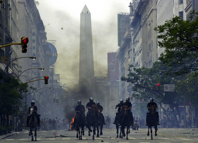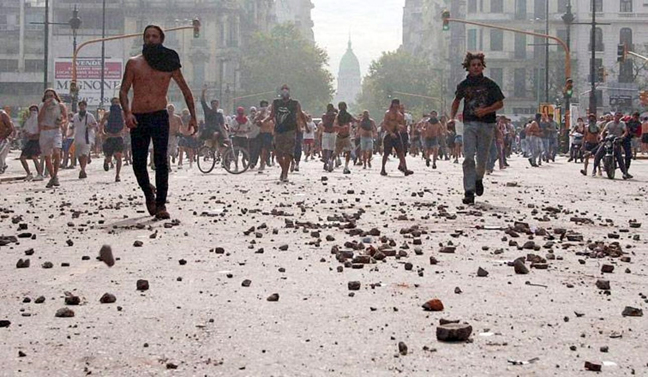 Κάπου εκεί, λανθασμένοι χειρισμοί της κυβέρνησης Ντε λα Ρούα – έφυγε μαζί με άλλα μέλη του επιτελείου του με ελικόπτερο για να γλιτώσει την οργή του πλήθους -, οδήγησαν τη χώρα σε κοινωνικό και οικονομικό έμφραγμα. Και, μέσα σε όλα αυτά, η είσοδος του Διεθνούς Νομισματικού Ταμείου.