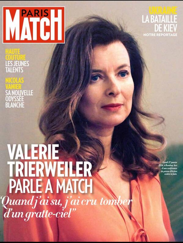 Με εξώφυλλο την πρώην Πρώτη Κυρία της Γαλλίας και τίτλο, «όταν το έμαθα ήταν σαν να έπεφτα από ουρανοξύστη» κυκλοφορεί σήμερα το περιοδικό Paris Match, με το οποίο συνεργάζεται η Βαλερί Τριερβελλέ.