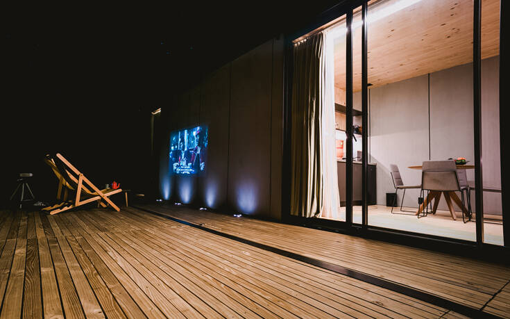 Η επιφάνεια του εσωτερικού είναι 38,5 τετραγωνικά μέτρα και είναι μάλιστα επεκτάσιμη, καθώς η SysHaus προσφέρει πολλές αρθρωτές λύσεις για διαβίωση έξω από τα καθιερωμένα.