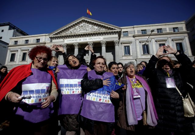 Στην κινητοποίηση αυτή, στην οποία κάλεσαν οργανώσεις γυναικών, εργατικά συνδικάτα και πολιτικά κόμματα, συμμετείχαν διαδηλωτές, άνδρες και γυναίκες, από περιοχές όλης της Ισπανίας.