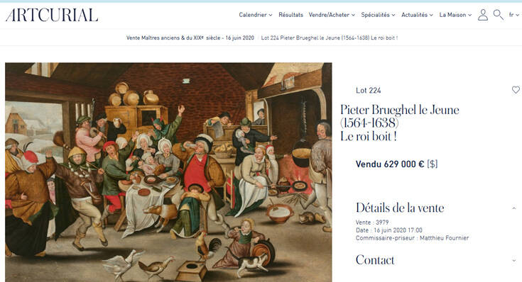 Έργα Μεγάλων Δασκάλων και ζωγράφων του 19ου αιώνα έβγαλε σήμερα σε δημοπρασία ο οίκος Artcurial, συγκεντρώνοντας 6,3 εκατομμύρια ευρώ (περιλαμβανομένων και των εξόδων), πολύ πάνω από τις αρχικές εκτιμήσεις, με έναν Πίτερ Μπρίγκελ (ή Μπρέγκελ) τον Νεώτερο και ένα σχέδιο του Πολιντόρο ντα Καραβάτζο να ξεπερνούν τις 600.000 ευρώ το καθένα.
