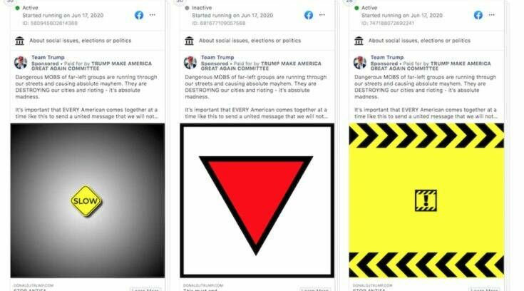 Οι διαφημίσεις έδειχναν ένα κόκκινο ανεστραμμένο τρίγωνο με κείμενο που ζητούσε από τους χρήστες του Facebook να λάβουν μέρος σε μια συλλογή υπογραφών εναντίον του Antifa κινήματος.
