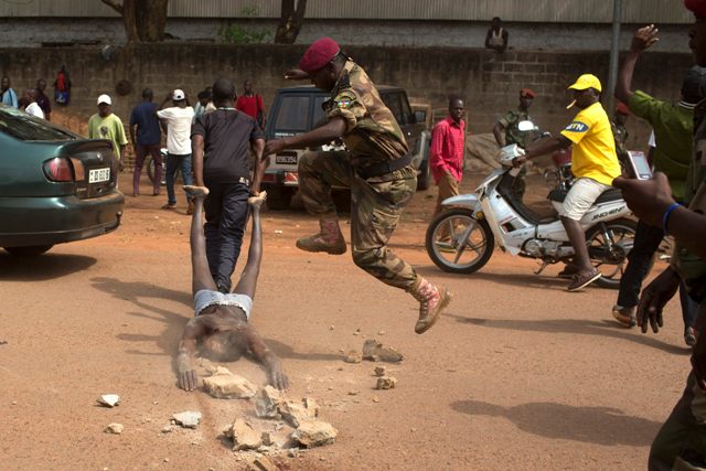 Εικόνες φρίκης κατέγραψαν οι φωτορεπόρτερ χτες στο Μπαγκουί της Κεντροαφρικανικής Δημοκρατίας, με ομάδα στρατιωτών να λιντσάρει έναν άντρα, κατηγορώντας τον ότι ήταν μέλος ισλαμιστών ανταρτών.