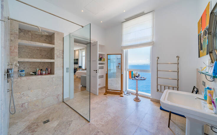 Κι ενώ την απίστευτη θέα στη Μεσόγειο τη χαίρεσαι από παντού στην οικία, το καλύτερο πανόραμα είναι αυτό που βλέπεις μέσα από την εξωτερική πισίνα με το θαλασσινό νερό.