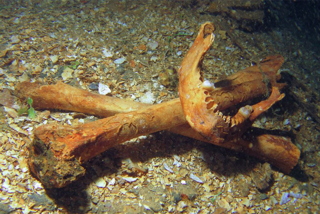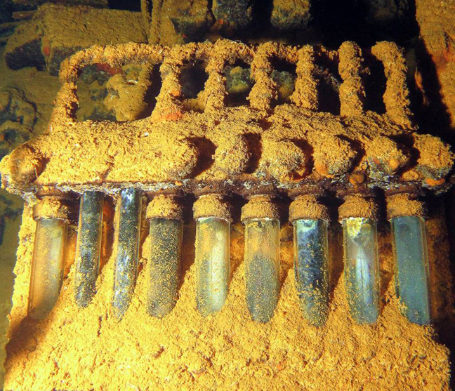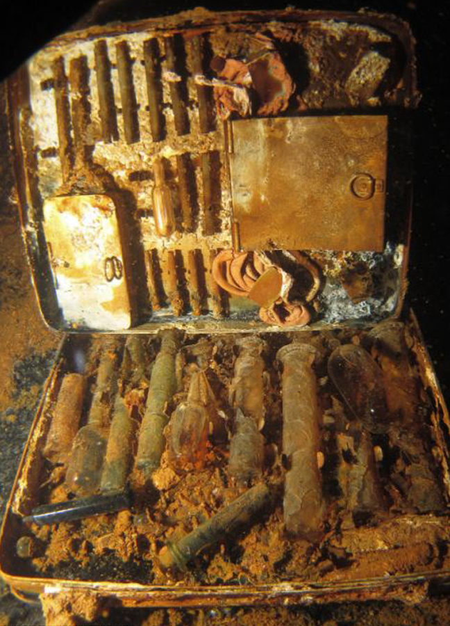 Αντιασφυξιογόνες μάσκες, κρανία, σφαίρες και φωτογραφίες βρίσκονταν στο βυθό, τον οποίο επισκέφτηκε για να τραβήξει τις παρακάτω φωτογραφίες ο Super Jolly από το Wraysbury του Berkshire.