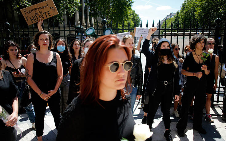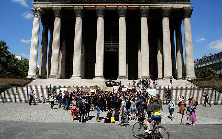 «Η κουλτούρα του βιασμού προχωρά», φώναζαν, παραπέμποντας με το σύνθημα αυτό στο όνομα του κόμματος του προέδρου Εμανουέλ Μακρόν.