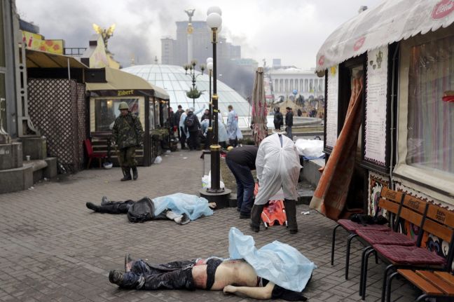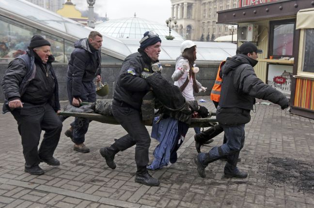 Σοκάρουν οι εικόνες που έρχονται σήμερα από την πλατεία Ανεξαρτησίας στο Κίεβο, όπου, παρά την εκεχειρία του προέδρου Βίκτορ Γιανουκόβιτς με την αντιπολίτευση, οι μάχες μαίνονται με σφοδρή ένταση.
