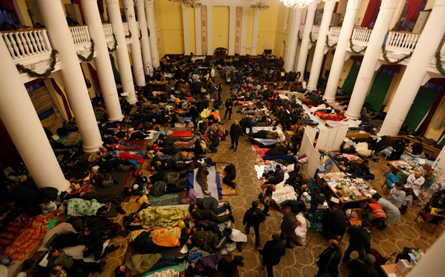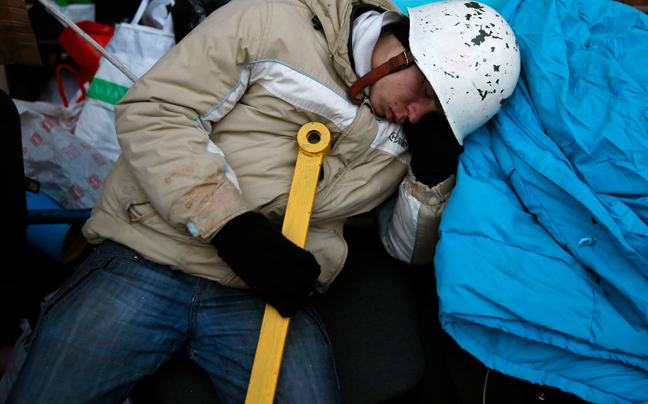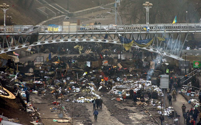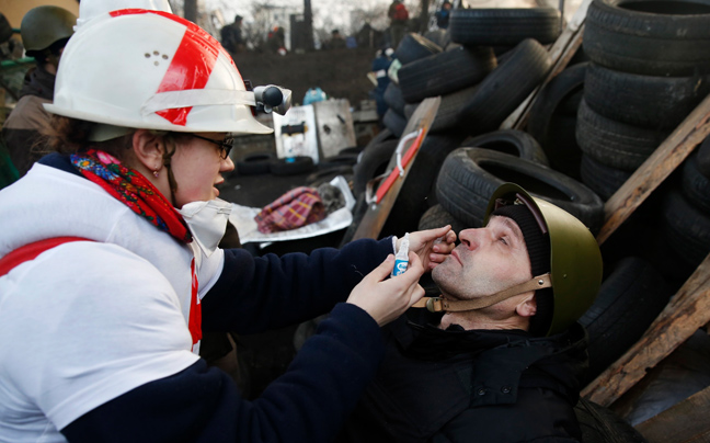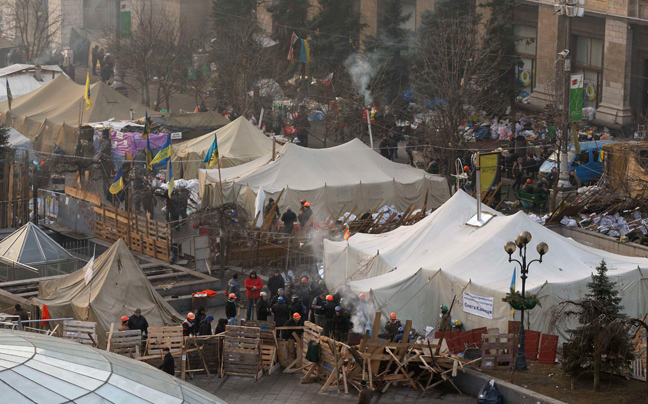 Εκτός ελέγχου βρίσκεται η κατάσταση στην πρωτεύουσα της Ουκρανίας με τον αριθμό των νεκρών να αυξάνεται δραματικά όσο περνούν οι ώρες. Εκκλησίες μετατράπηκαν σε ξενοδοχεία, ενώ αντικυβερνητικοί διαδηλωτές κοιμούνται και ξεκουράζονται στο πεδίο της μάχης.