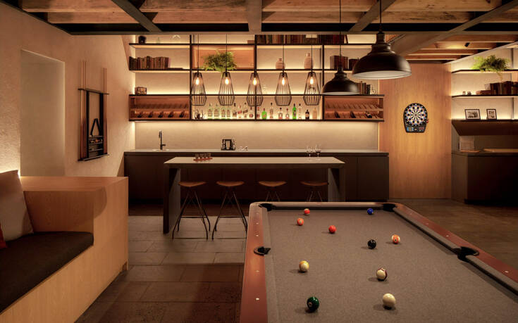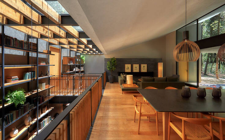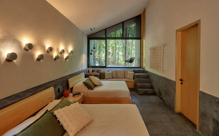 Η αισθητική στο εσωτερικό ακολουθεί την ίδια φυσική παλέτα υλικών και χρωμάτων.