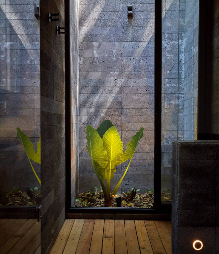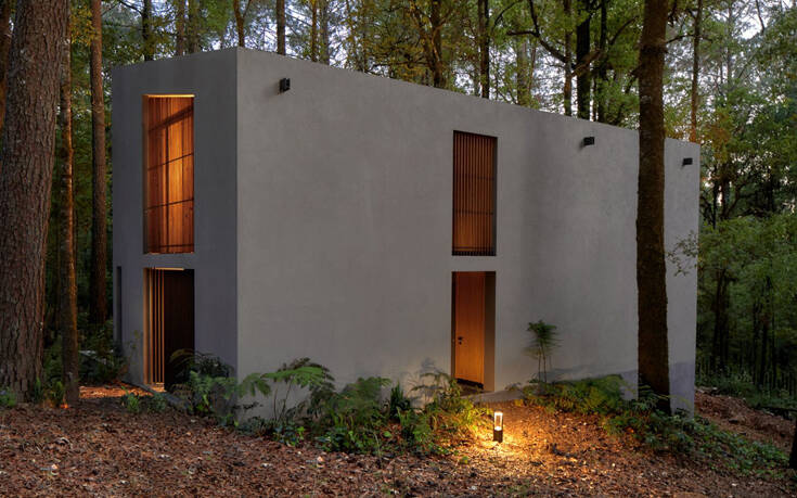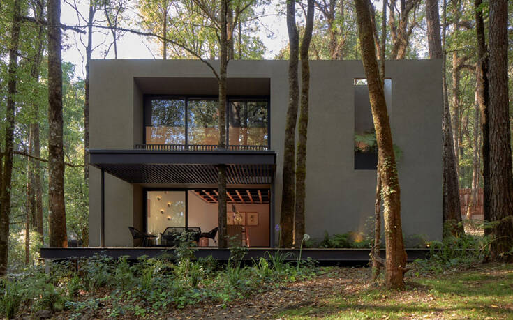 Το αρχιτεκτονικό γραφείο Weber Arquitectos επιστράτευσε γκρι ηφαιστειακά πετρώματα για να χτίσει πέντε οικήματα σε μια κατάφυτη περιοχή στα δυτικά της Πόλης του Μεξικού.