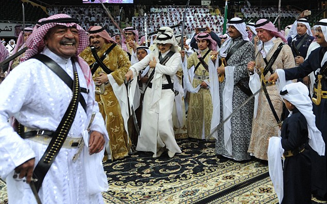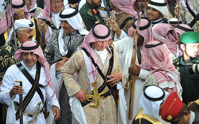 Ο Κάρολος και μέλη της βασιλικής οικογένειας της Σαουδικής Αραβίας, έκαναν το χορό των σπαθιών, ένα τελετουργικό γνωστό ως «Αρντα», με αφορμή την επίσκεψή του στη χώρα.