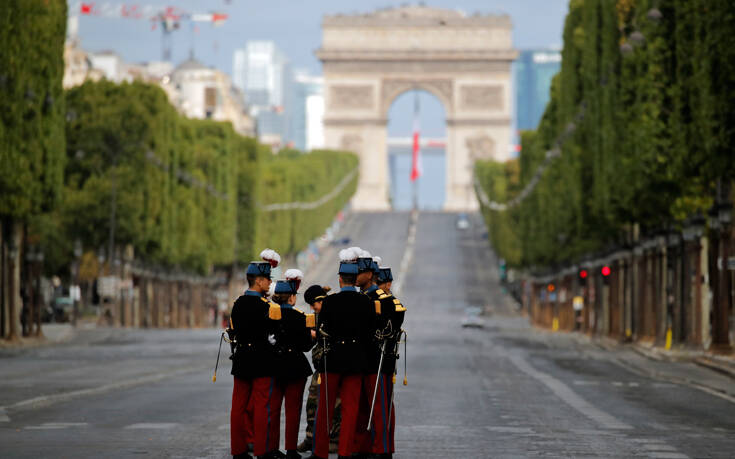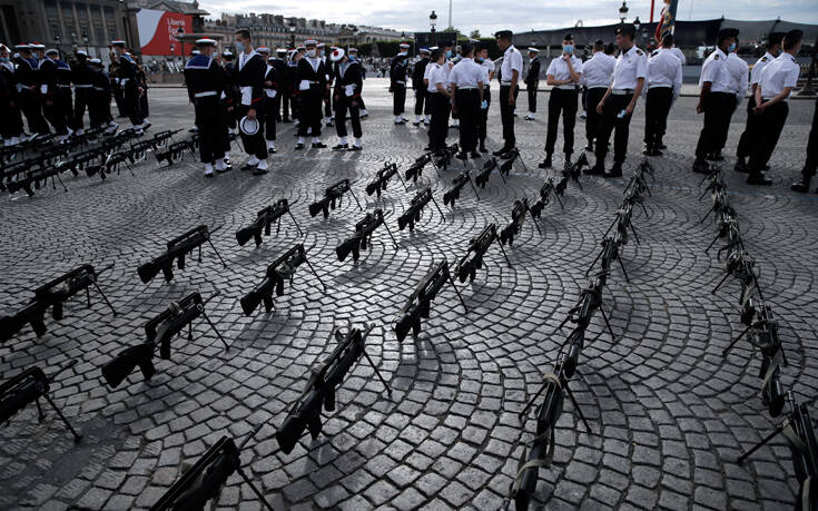 Στο τέλος αυτής της τελετής σε περιορισμένο σχήμα που έγινε για πρώτη φορά, ο Γάλλος πρόεδρος Εμανουέλ Μακρόν θα δώσει νωρίς το απόγευμα την παραδοσιακή τηλεοπτική συνέντευξη για να παρουσιάσει στους Γάλλους ένα σχέδιο ανάκαμψης.