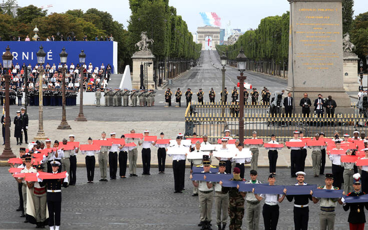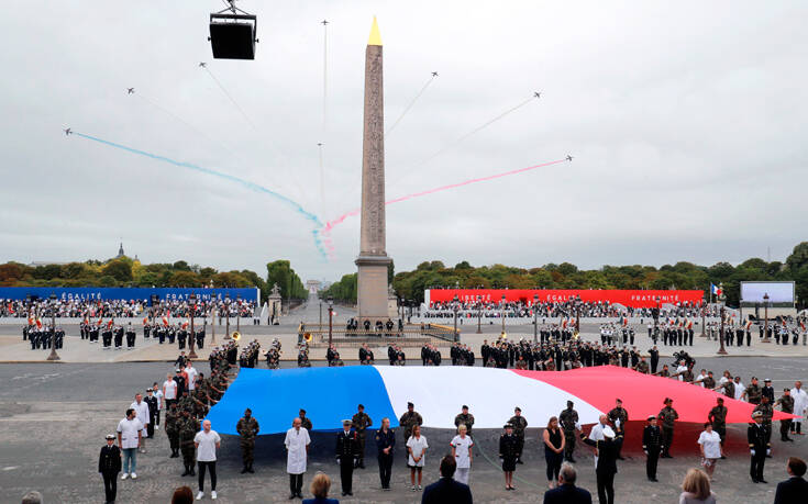 «Αυτή τη 14η Ιουλίου (…) επιθυμώ, μαζί με όλους τους Γάλλους, με τις ίδιες τις ένοπλες δυνάμεις, να απευθύνω ηχηρό φόρο τιμής στους υγειονομικούς εργάτες και σ’ αυτούς που, σε όλους τους τομείς, επέτρεψαν να συνεχισθεί η δημόσια, η κοινωνική και η οικονομική ζωή», υπογράμμισε ο Μακρόν σε μήνυμα που έδωσε στη δημοσιότητα σήμερα το πρωί.