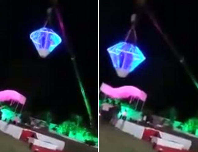 Ένας γερανός, που κουβαλούσε μια «κρυστάλλινη πλατφόρμα» που μετέφερε τη νύφη και την αδερφή στο χώρο εκδηλώσεων το χωριό Adalaj στην περιοχή Gujarat, κατέρρευσε αφότου πάρκαρε σε ασταθές και λασπώδες τερέν.