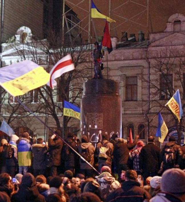 Η οργή πολλών ουκρανών στρέφεται κατά του πρώτου ηγέτη της Σοβιετικής Ένωσης και των μπολσεβίκων, καθώς διαδηλωτές, σύμφωνα φέρεται να έχουν γκρεμίσει πάνω από περίπου 100 αγάλματα του Βλαντιμίρ Λένιν σε όλη τη χώρα.