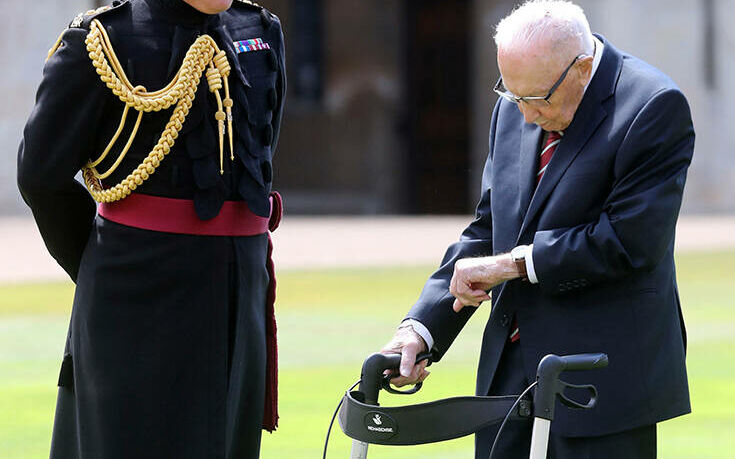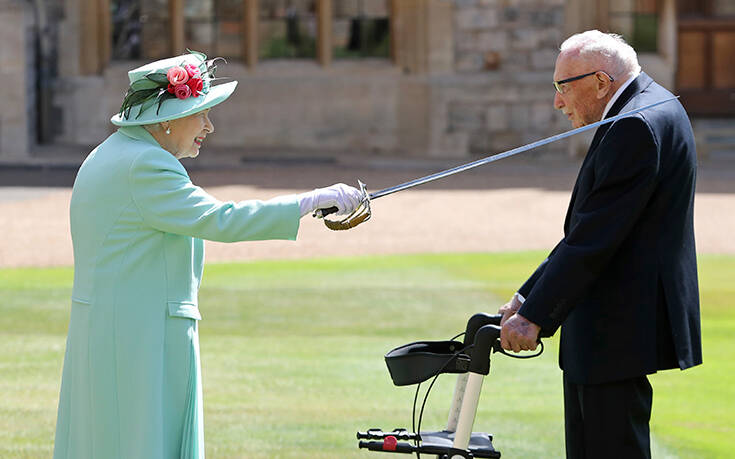 Ο Τομ Μουρ, ο βετεράνος του βρετανικού στρατού ηλικίας 100 ετών που κατάφερε να συγκεντρώσει περίπου 33 εκατομμύρια λίρες (36,2 εκατομμύρια ευρώ) για τους επαγγελματίες υγείας της χώρας του μεσούσης της πανδημίας του νέου κορονοϊού, χρίστηκε ιππότης σήμερα από τη βασίλισσα Ελισάβετ Β΄, σε μια τελετή στο παλάτι του Ουίνδσορ.