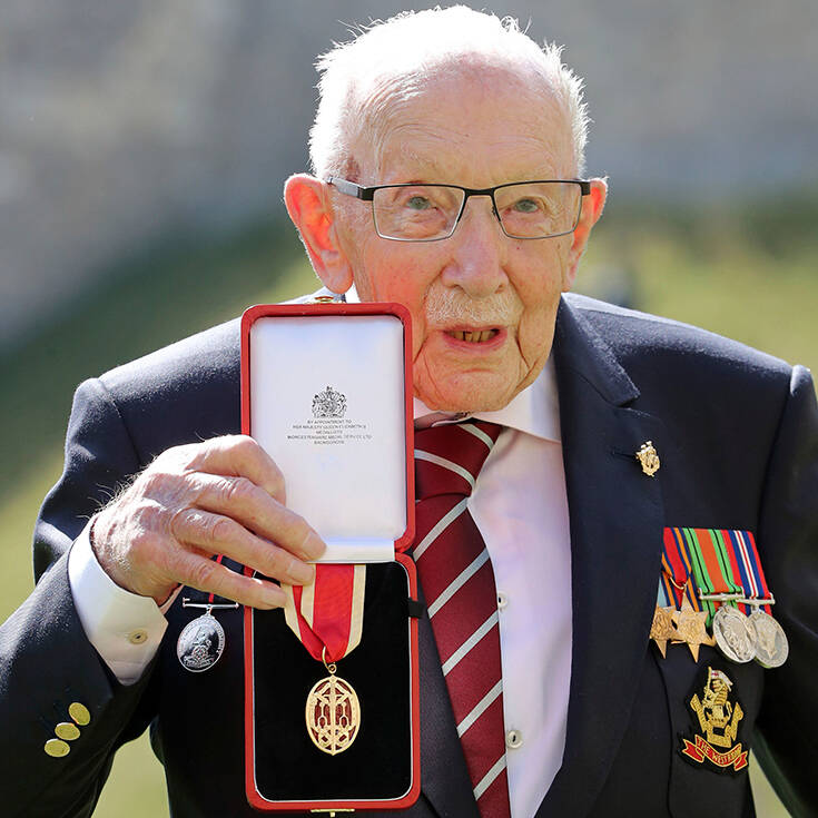 Ο «Λοχαγός Τομ», που συμμετείχε στον Β΄ Παγκόσμιο Πόλεμο, συγκέντρωσε το άνευ προηγουμένου ποσό των 33 εκατομμυρίων λιρών, με την προσπάθειά του να την αναγνωρίζει και το βιβλίο των ρεκόρ Γκίνες, κάνοντας με τη βοήθεια του περιπατητήρα του 100 φορές τον γύρο του κήπου του στο Μπεντφορντσάιρ, προτού κλείσει έναν αιώνα ζωής, στις 30 Απριλίου.