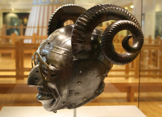 Το κράνος αυτό (το μόνο τμήμα της πανοπλίας που «επέζησε» μέχρι τις μέρες μας) είχε ανθρώπινο προσωπείο και για κάποιο ανεξήγητο λόγο… κάτι περίεργα, στριφογυριστά κέρατα προβάτου.