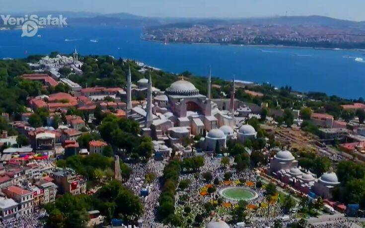 Οι επίσημοι έφτασαν πριν λίγο στο παγκόσμιας εμβέλειας μνημείο, καθώς γίνεται η πρώτη μουσουλμανική προσευχή, έπειτα από 86 χρόνια.