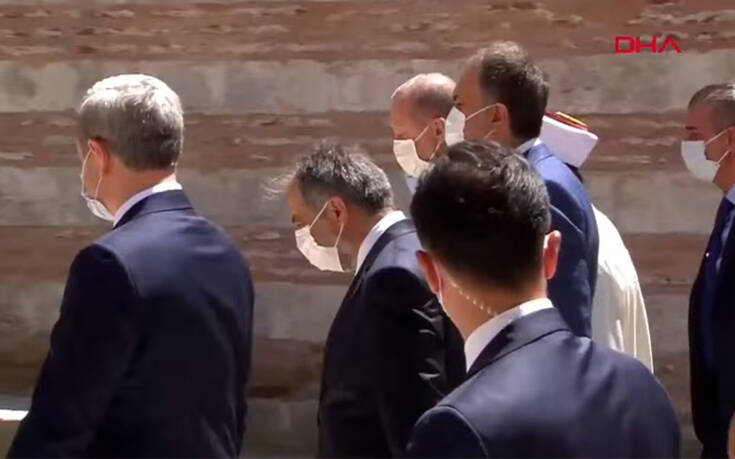 Φορώντας μάσκα, όπως έχει ζητηθεί από όλους τους προσκυνητές, έφτασε πριν λίγο στην Αγία Σοφία ο Τούρκος πρόεδρος Ταγίπ Ερντογάν.