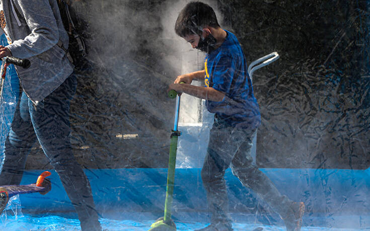 Πάνω από 353.000 κρούσματα κορονοϊού και γύρω στα 9.400 θύματα μετρά η Χιλή, με τις Αρχές να λαμβάνουν μέτρα για να αποτρέψουν την περαιτέρω εξάπλωση της πανδημίας. Στο πλαίσιο αυτό γίνονται και οι απαραίτητες απολυμάνσεις των κατοίκων, με έναν πιτσιρικά να περνά τη διαδικασία με το πατίνι του. Σίγουρα μια όχι και τόσο συνηθισμένη εικόνα, αλλά στην εποχή του ιού τα πάντα δεν μοιάζουν τόσο ξένα.